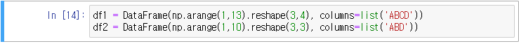 서로 다른 key를 갖는 경우 key의 합집합의 결과를 리턴하기 위해 아래와 같이 각 객체의 모든 key에 대해 reindex 처리 후 연산 → NA 리턴