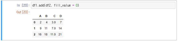 데이터프레임에서도 add 메서드로 연산이 가능하다.