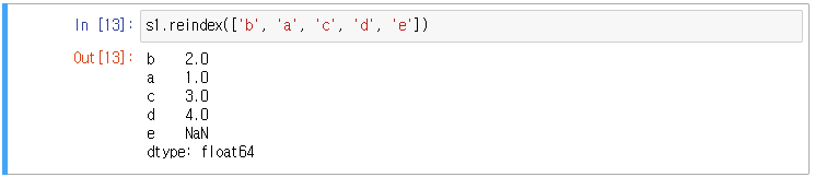 reindex로 index를 재배치 할 수 있다.