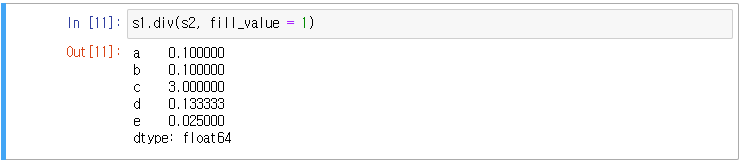 두 시리즈의 나누기 연산